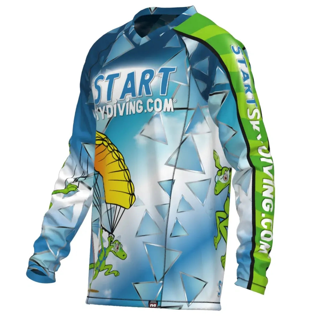 The premium Skydiving Jersey by Manufactory Apparel is known for durability and performance, with striking custom Start Skydiving graphic designs.